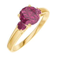 « L'ATELIER » NR. 165442Ring Geelgoud 9 karaat - Robijn rond 0.7 Karaat - Aanleunende edelstenen Robijn 4.9 (7)
