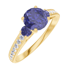 « L'ATELIER » NR. 166066Ring Geelgoud 9 karaat - Blauwe saffier rond 0.7 Karaat - Aanleunende edelstenen Blauwe saffier - Setting Diamant 4.9 (7)