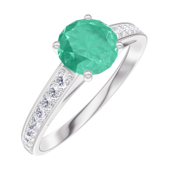 « L'ATELIER » NR. 166608Ring Witgoud 9 karaat - Smaragd rond 0.7 Karaat - Setting Diamant 4.9 (7)