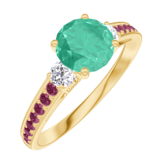 « L'ATELIER » NR. 166630Ring Geelgoud 9 karaat - Smaragd rond 0.7 Karaat - Aanleunende edelstenen Diamant - Setting Robijn 5 (7)