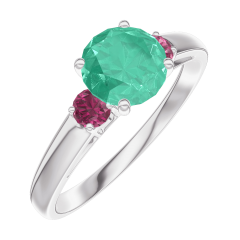 « L'ATELIER » Nº166644Ring Witgoud 9 karaat - Smaragd rond 0.7 Karaat - Aanleunende edelstenen Robijn 4.9 (7)