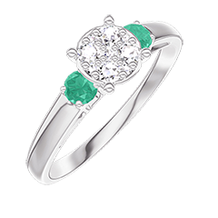 « L'ATELIER » NR. 210284Ring Witgoud 9 karaat - Cluster van natuurlijke diamantent rond gelijkwaardig 0.7 - Aanleunende edelstenen Smaragd 4.9 (7)