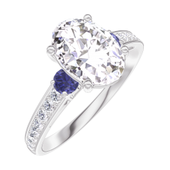 « L'ATELIER » NR. 167568Ring Witgoud 9 karaat - Diamant Ovaal 1 Karaat - Aanleunende edelstenen Blauwe saffier - Setting Diamant 4.7 (10)