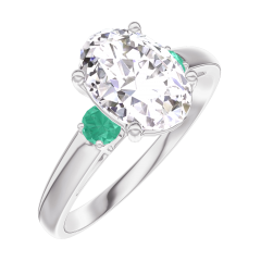 « L'ATELIER » NR. 167584Ring Witgoud 9 karaat - Diamant Ovaal 1 Karaat - Aanleunende edelstenen Smaragd 4.7 (10)