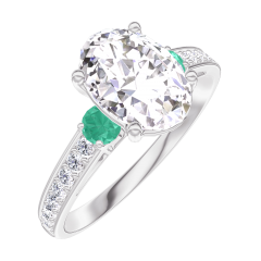 « L'ATELIER » NR. 167588Ring Witgoud 9 karaat - Diamant Ovaal 1 Karaat - Aanleunende edelstenen Smaragd - Setting Diamant 4.7 (10)