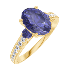 « L'ATELIER » NR. 168765Ring Geelgoud 18 karaat - Blauwe saffier Ovaal 1 Karaat - Aanleunende edelstenen Blauwe saffier - Setting Diamant 4.7 (9)