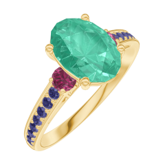 « L'ATELIER » NR. 169353Ring Geelgoud 18 karaat - Smaragd Ovaal 1 Karaat - Aanleunende edelstenen Robijn - Setting Blauwe saffier 4.7 (10)