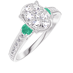« L'ATELIER » NR. 211188Ring Witgoud 9 karaat - Cluster van natuurlijke diamantent Ovaal gelijkwaardig 1 - Aanleunende edelstenen Smaragd - Setting Diamant 4.7 (10)