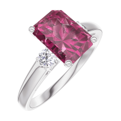« L'ATELIER » NR. 1004774Ring Witgoud 9 karaat - Synthetische robijn Rechthoekig 1 Karaat - Aanleunende edelstenen Laboratorium diamant 4.6 (5)