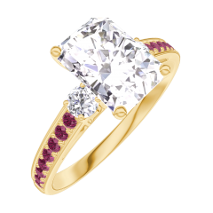 « L'ATELIER » NR. 167429Ring Geelgoud 18 karaat - Diamant Rechthoekig 1 Karaat - Aanleunende edelstenen Diamant - Setting Robijn 4.6 (5)