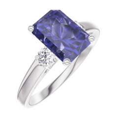 « L'ATELIER » NR. 168623Ring Witgoud 18 karaat - Blauwe saffier Rechthoekig 1 Karaat - Aanleunende edelstenen Diamant 4.6 (5)