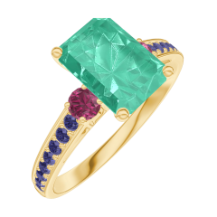 « L'ATELIER » NR. 169253Ring Geelgoud 18 karaat - Smaragd Rechthoekig 1 Karaat - Aanleunende edelstenen Robijn - Setting Blauwe saffier 4.5 (8)