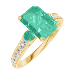 « L'ATELIER » NR. 169286Ring Geelgoud 9 karaat - Smaragd Rechthoekig 1 Karaat - Aanleunende edelstenen Smaragd - Setting Diamant 4.6 (5)