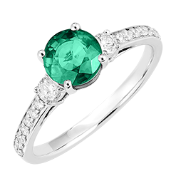 « L'ATELIER » NR. 1005577Ring Witgoud 18 karaat - Synthetische smaragd rond 1 Karaat - Aanleunende edelstenen Laboratorium diamant - Setting Laboratorium diamant 4.8 (14)
