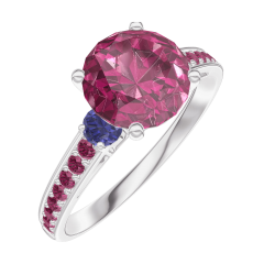 « L'ATELIER » NR. 167871Ring Witgoud 18 karaat - Robijn rond 1 Karaat - Aanleunende edelstenen Blauwe saffier - Setting Robijn 4.8 (14)