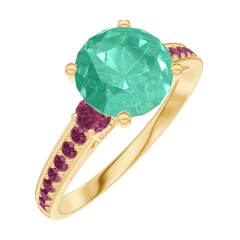 « L'ATELIER » NR. 169050Ring Geelgoud 9 karaat - Smaragd rond 1 Karaat - Aanleunende edelstenen Robijn - Setting Robijn 4.9 (14)