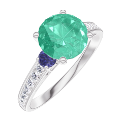 « L'ATELIER » Nº169068Ring Witgoud 9 karaat - Smaragd rond 1 Karaat - Aanleunende edelstenen Blauwe saffier - Setting Diamant 4.8 (14)