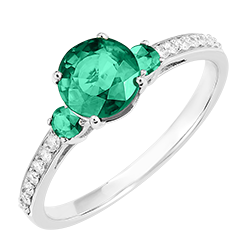 « L'ATELIER » NR. 169087Ring Witgoud 18 karaat - Smaragd rond 1 Karaat - Aanleunende edelstenen Smaragd - Setting Diamant 4.8 (14)