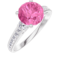 « L'ATELIER » NR. 184681Ring Witgoud 18 karaat - Rosé saffier rond 1 Karaat - Aanleunende edelstenen Diamant - Setting Diamant 4.8 (14)