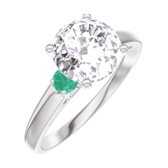 « L'ATELIER » NR. 187283Ring Witgoud 18 karaat - Laboratorium diamant rond 1 Karaat - Aanleunende edelstenen Smaragd 4.8 (14)