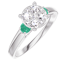 « L'ATELIER » NR. 210884Ring Witgoud 9 karaat - Cluster van natuurlijke diamantent rond gelijkwaardig 1 - Aanleunende edelstenen Smaragd 4.8 (14)
