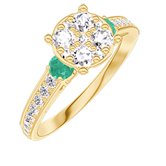 « L'ATELIER » NR. 210886Ring Geelgoud 9 karaat - Cluster van natuurlijke diamantent rond gelijkwaardig 1 - Aanleunende edelstenen Smaragd - Setting Diamant 4.8 (14)