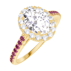 « L'ATELIER » NR. 170153Ring Geelgoud 18 karaat - Diamant Ovaal 0.5 Karaat - Halo Diamant - Setting Robijn 4.5 (12)