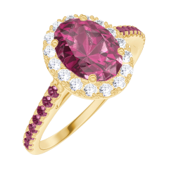 « L'ATELIER » NR. 170441Ring Geelgoud 18 karaat - Robijn Ovaal 0.5 Karaat - Halo Diamant - Setting Robijn 4.5 (12)