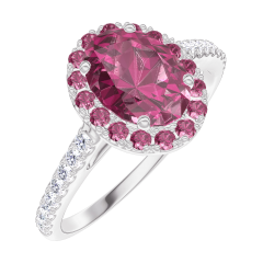 « L'ATELIER » Nº170455Ring Witgoud 18 karaat - Robijn Ovaal 0.5 Karaat - Halo Robijn - Setting Diamant 4.5 (12)