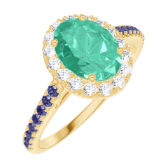 « L'ATELIER » NR. 171022Ring Geelgoud 9 karaat - Smaragd Ovaal 0.5 Karaat - Halo Diamant - Setting Blauwe saffier 4.5 (12)