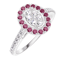 « L'ATELIER » NR. 211567Ring Witgoud 18 karaat - Cluster van natuurlijke diamantent Ovaal gelijkwaardig 0.5 - Halo Robijn - Setting Diamant 4.5 (12)