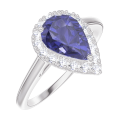 « L'ATELIER » NR. 170772Ring Witgoud 9 karaat - Blauwe saffier Peer 0.5 Karaat - Halo Diamant 4.8 (13)