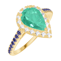 « L'ATELIER » NR. 171070Ring Geelgoud 9 karaat - Smaragd Peer 0.5 Karaat - Halo Diamant - Setting Blauwe saffier 4.9 (14)