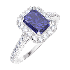 « L'ATELIER » NR. 1006743Ring Witgoud 9 karaat - Synthetische saffier Rechthoekig 0.5 Karaat - Halo Laboratorium diamant - Setting Laboratorium diamant 4.9 (46)