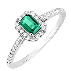 « L'ATELIER » NR. 1007030Ring Witgoud 18 karaat - Synthetische smaragd Rechthoekig 0.5 Karaat - Halo Laboratorium diamant - Setting Laboratorium diamant 4.7 (46)