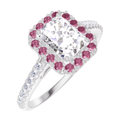 « L'ATELIER » Nº170119Ring Witgoud 18 karaat - Diamant Rechthoekig 0.5 Karaat - Halo Robijn - Setting Diamant 4.7 (44)