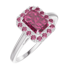 « L'ATELIER » NR. 170403Ring Witgoud 18 karaat - Robijn Rechthoekig 0.5 Karaat - Halo Robijn 4.8 (49)