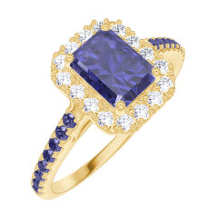 « L'ATELIER » NR. 170686Ring Geelgoud 9 karaat - Blauwe saffier Rechthoekig 0.5 Karaat - Halo Diamant - Setting Blauwe saffier 4.9 (46)