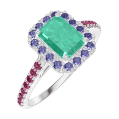 « L'ATELIER » NR. 171004Ring Witgoud 9 karaat - Smaragd Rechthoekig 0.5 Karaat - Halo Blauwe saffier - Setting Robijn 4.7 (46)