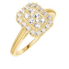 « L'ATELIER » NR. 211498Ring Geelgoud 9 karaat - Cluster van natuurlijke diamantent Rechthoekig gelijkwaardig 0.5 - Halo Diamant 4.7 (46)