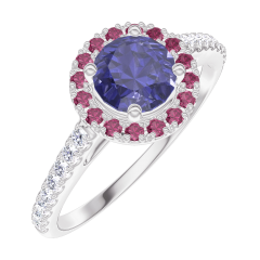 « L'ATELIER » Nº1006663Ring Witgoud 9 karaat - Synthetische saffier rond 0.5 Karaat - Halo Robijn - Setting Laboratorium diamant 4.7 (18)