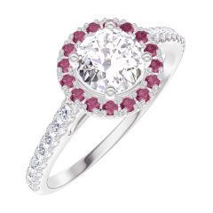 « L'ATELIER » Nº170023Ring Witgoud 18 karaat - Diamant rond 0.5 Karaat - Halo Robijn - Setting Diamant 4.7 (18)