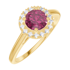 « L'ATELIER » NR. 170289Ring Geelgoud 18 karaat - Robijn rond 0.5 Karaat - Halo Diamant 4.7 (18)