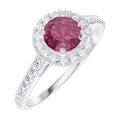 « L'ATELIER » NR. 170296Ring Witgoud 9 karaat - Robijn rond 0.5 Karaat - Halo Diamant - Setting Diamant 4.7 (18)