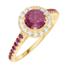 « L'ATELIER » NR. 170298Ring Geelgoud 9 karaat - Robijn rond 0.5 Karaat - Halo Diamant - Setting Robijn 4.7 (18)