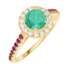 « L'ATELIER » NR. 170874Ring Geelgoud 9 karaat - Smaragd rond 0.5 Karaat - Halo Diamant - Setting Robijn 4.7 (18)