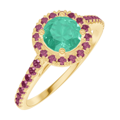 « L'ATELIER » NR. 170889Ring Geelgoud 18 karaat - Smaragd Rond 0.5 Karaat - Halo Robijn - Setting Robijn 4.7 (18)