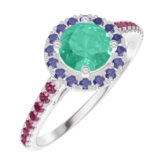 « L'ATELIER » NR. 170907Ring Witgoud 18 karaat - Smaragd rond 0.5 Karaat - Halo Blauwe saffier - Setting Robijn 5 (18)