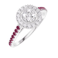 « L'ATELIER » NR. 211411Ring Witgoud 18 karaat - Cluster van natuurlijke diamantent rond gelijkwaardig 0.5 - Halo Diamant - Setting Robijn 5 (18)