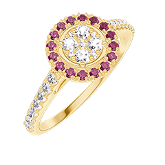 « L'ATELIER » NR. 211421Ring Geelgoud 18 karaat - Cluster van natuurlijke diamantent Rond gelijkwaardig 0.5 - Halo Robijn - Setting Diamant 4.7 (18)